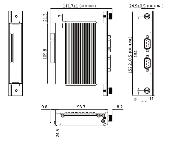 2x Isolated RS-232/422/485, (Supports 5V/12V), DB9, 1 Deck